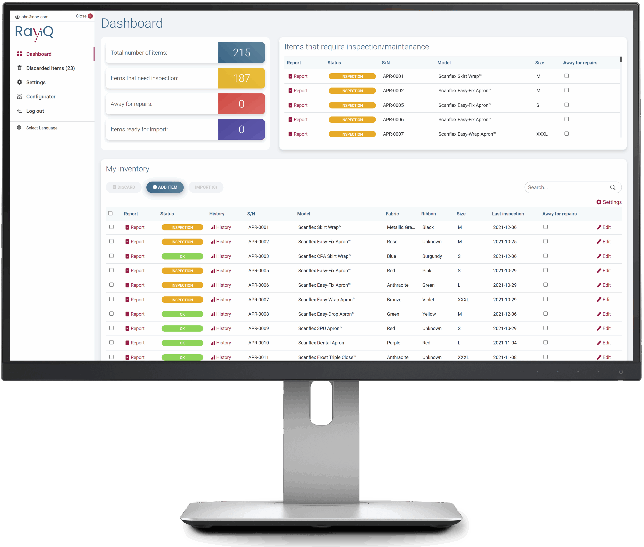 Ray iQ is een door Cablon Medical ontwikkelde webapp die jaarlijkse keuring en administratie van stralingsbeschermende kleding makkelijker én overzichtelijker maakt. Via deze app ontvangt u automatisch reminders voor de jaarlijkse controles en creëert u eenvoudig de rapportages per item. Grote en ingewikkelde Excelbestanden worden hiermee overbodig! Ook is er een kleding configurator in de app opgenomen. Zo kunt u zelf gemakkelijk uw kleding samenstellen en gelijk zien hoe deze eruit komt te zien.
